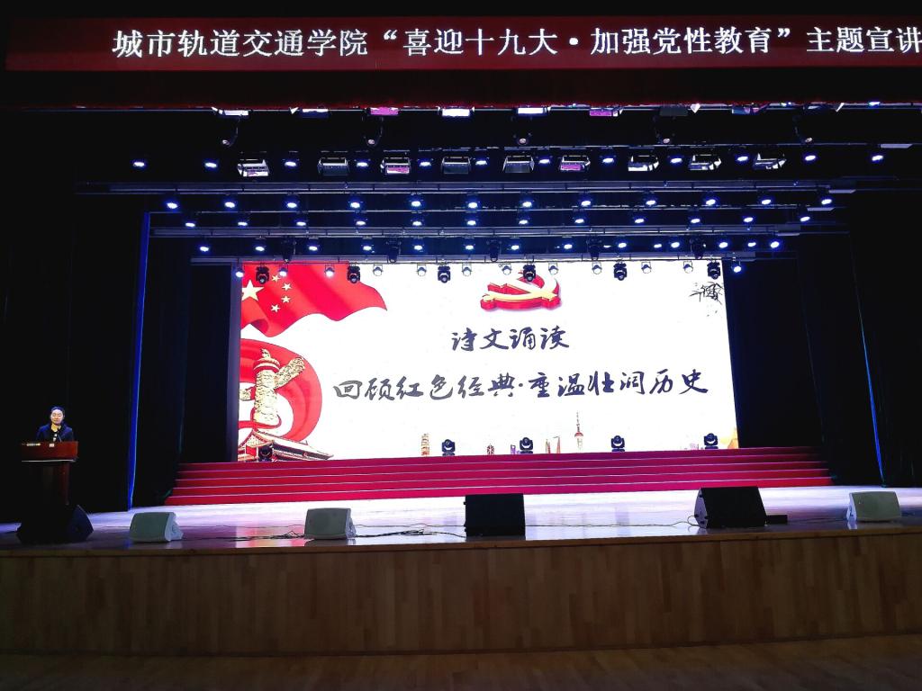 为了进一步开展“学习习近平总书记系列重要讲话精神,迎接党的十九大胜利召开”,城轨分院认真抓好党建工作,进一步提高党性认识,于10月13日下午在大学生活动中心开展“喜迎十九大·加强党性教育”主题宣讲活动。