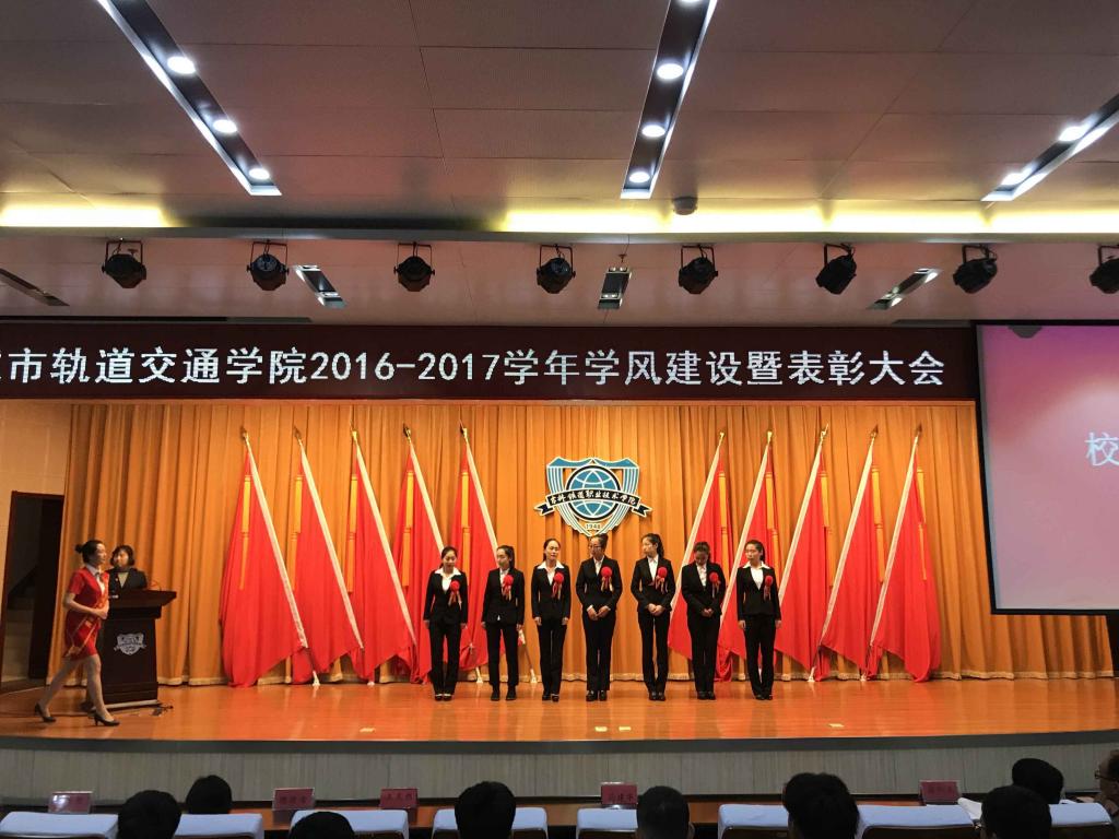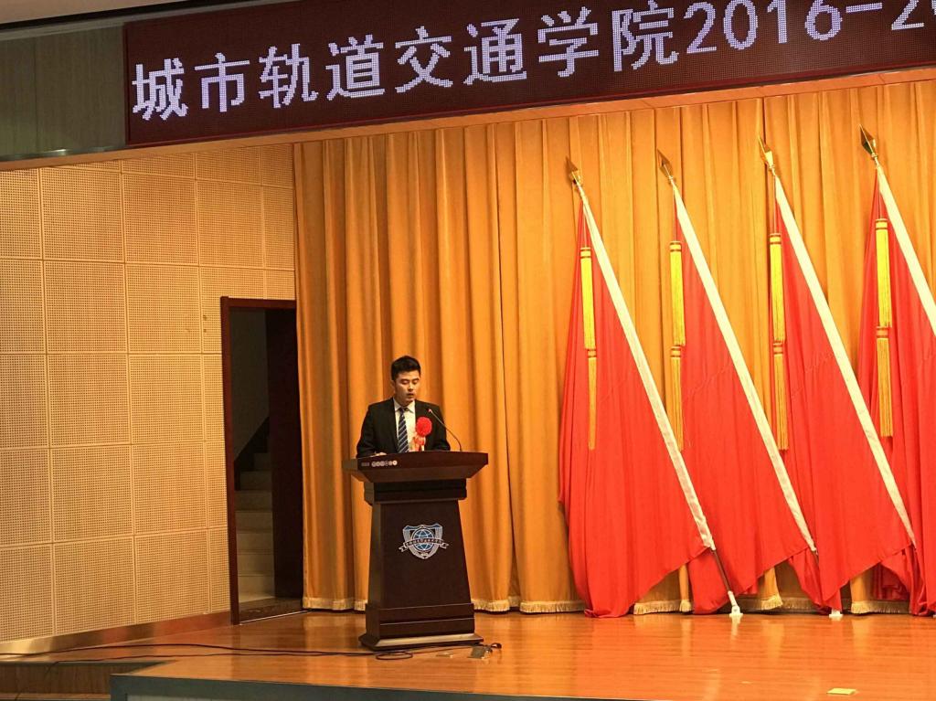 灿烂金秋、欣逢盛会,在十九大胜利召开之际,城轨分院于10月18日下午15:00在图书馆报告厅,举行“珍惜韶华·砥砺前行”2016-2017学年学风建设暨表彰大会。院长马建华、党总支书记周飞舟、副院长王笑然,全体教师及分院2016、2017级学生参加了本次大会。会议由学办主任宋洋老师主持。