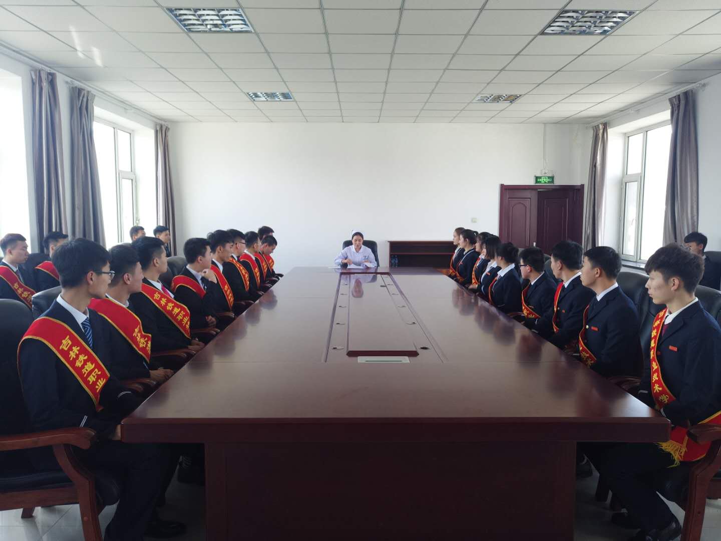 志愿者们抵达医院后,受到了护理部张主任热情的接待,并向同学们介绍了医院的基本情况,同时就工作内容、注意事项、突发情况及应急预案等进行了讲解。随后,医护人员带领志愿者们参观了永吉县医院各个就诊区,让同学们对医院有了进一步的认识,规范有序的工作环境、人性化的医疗服务以及先进的信息化管理制度等都给同学们留下了深刻印象。最后,学办宋洋主任介绍了此次志愿服务活动的意义,她强调通过服务患者就诊,提升患者的满意度,引导学生在帮助他人、奉献社会中践行社会主义核心价值观,加强德育教育,更好地实现实践育人。