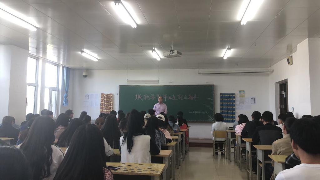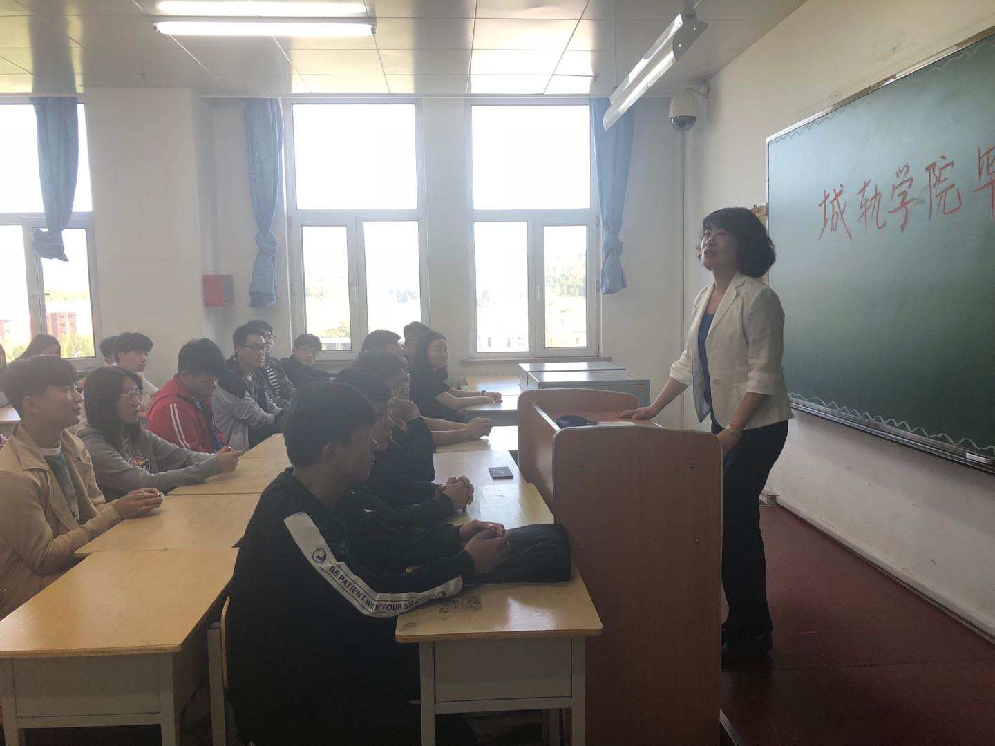 随着2018年就业季拉开序幕, 9月19日下午,城市轨道交通学院在教学楼505教室召开了2019届毕业生就业动员与指导会议,分院院长马建华、党总支书记周飞舟、学办主任宋洋、辅导员李振以及城轨分院2019届全体毕业生参加了此次会议。