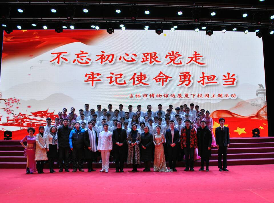 2018年12月14号下午1时,由城市轨道交通分院、吉林市博物馆、青山主持朗诵学校联合举办的“不忘初心跟党走•牢记使命勇担当”弘扬十九大精神、弘扬廉洁文化主题活动在大学生活动中心举行。吉林市博物馆章巍馆长、吉林市博物馆产业发展部主任孙老师、青山主持朗诵学校张青山校长以及城轨学院全体教师参加了此次活动。