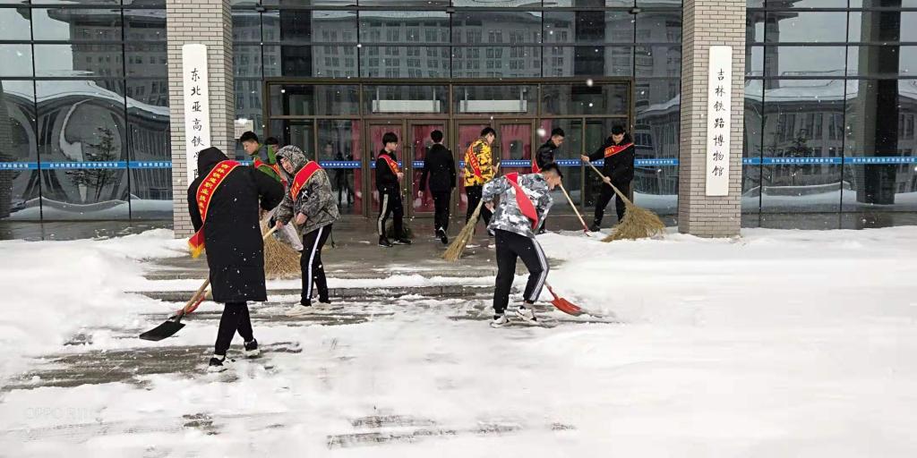 3月6日下午,城市轨道交通分院15名志愿者利用课余时间,为刚刚下完雪的图书馆进行了清雪活动。同学们用工具把图书馆门前的积雪清干净,方便师生进出图书馆,为雪后的图书馆营造一块干净、便捷的出行道路。