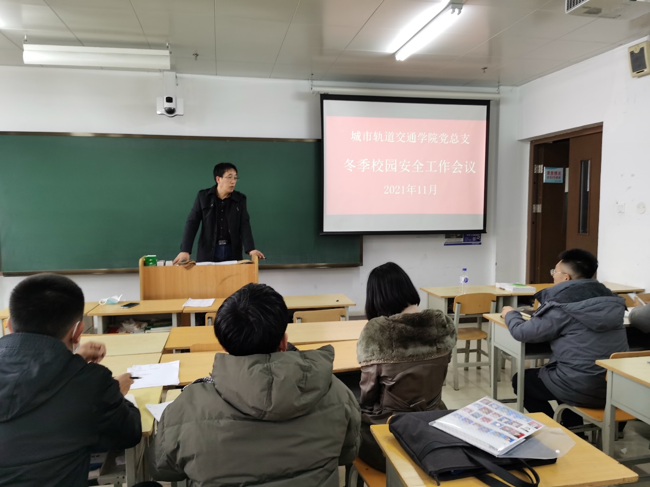 为扎实做好学生安全教育和管理工作,进一步提高学生自身综合素养和安全防范意识,城市轨道交通学院11月3日召开了冬季校园安全部署会议。党总支书记周飞舟,副院长王笑然,团委书记郭馥铭,学工辅导员以及全体教师出席了会议。会议由王笑然主持。