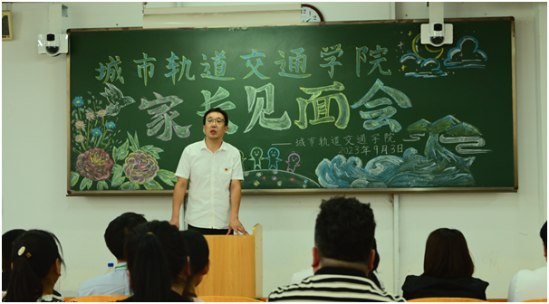 城市轨道交通学院于2023年9月3日上午,在教学楼东201教室举行2023级新生家长见面会。此次见面会由分院党委副书记李佰玲主持。分院党总支书记关洪亮、分院院长王笑然、分院党总支副书记李佰玲、分院学办主任郭馥铭、分院大一辅导员李俊、分院大二辅导员朱家林和城轨学院新生班主任出席此次会议。