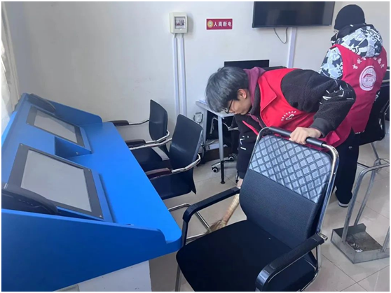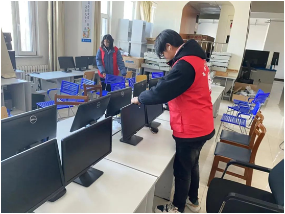 活动中,同学们干得热火朝天,认真清扫地面垃圾,仔细擦拭桌子、仪器等,清除卫生死角。