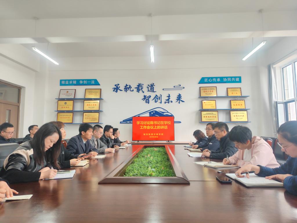 关洪亮强调陈书记的讲话高屋建瓴,推进职普融通、产教融合,增强职业教育适应性,为新时期高质量发展擘画蓝图,表示陈书记在讲话中要求如何通过增强人才培养适应性,建好一所合格职业技术大学,需要每一位教职工面对、思考、研究。切实将讲话内容转化为发展动能,在贯彻落实学校发展战略中展现更大作为。
