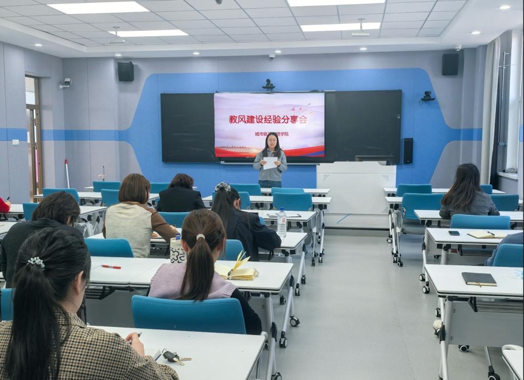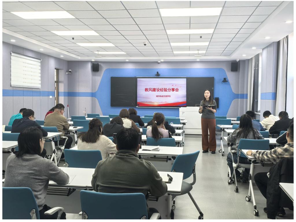 为深入落实学校《课堂教学工作规范》、《进一步加强教风建设的措施》文件精神,强化教师教书育人职责,全面提升教育教学质量和人才培养水平,11 月 21 日下午,城市轨道交通学院在双子楼 B座413 教室召开了教风建设经验分享会,城市轨道交通学院全体教师参会。学院各教研室推选的马大利、李佳悦、回鑫权、姜岩四位教风标兵,结合自身教学实践,分享了践行教风建设要求的宝贵经验,为全院教师搭建了交流互鉴的良好平台。