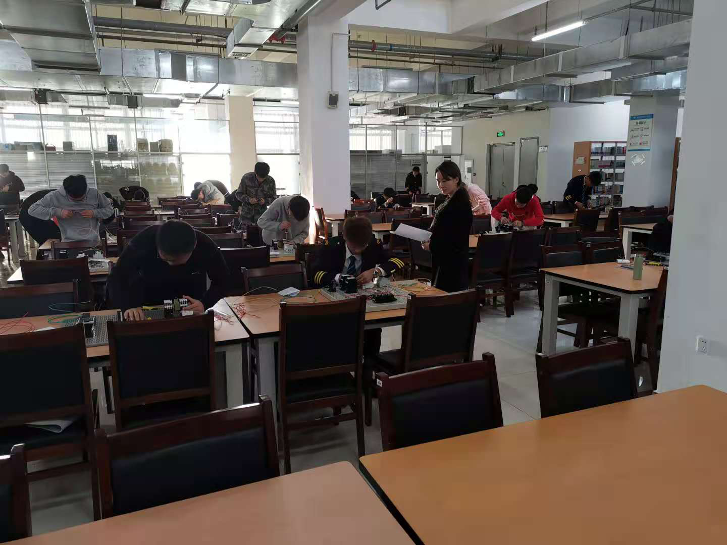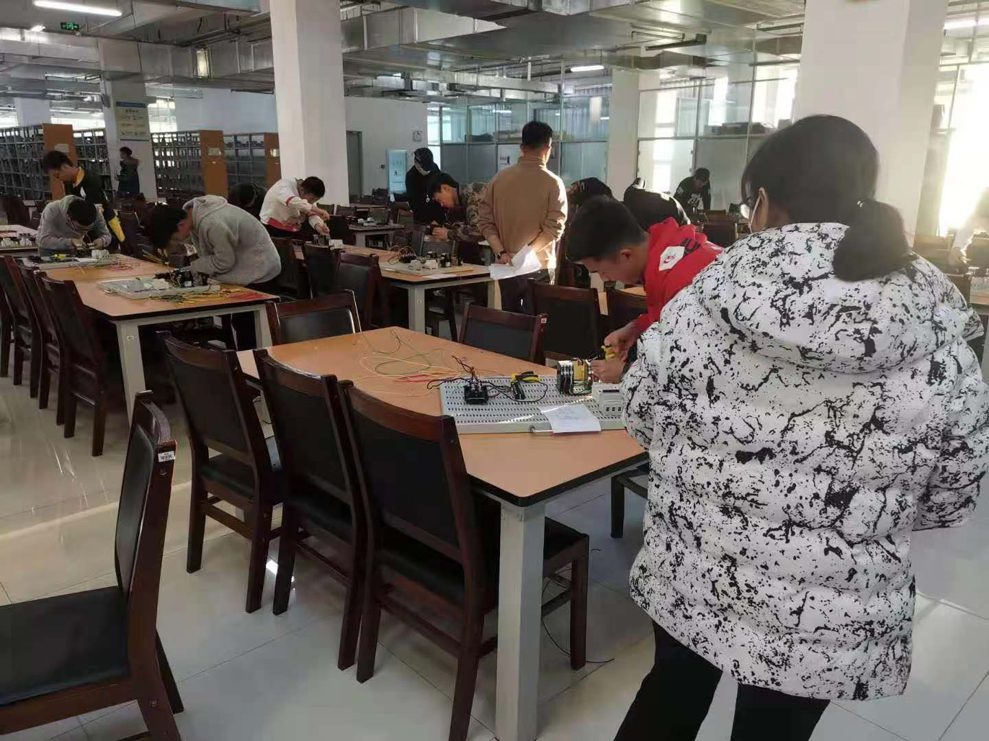 为进一步推进我校城市轨道交通供配电与机电技术专业人才培养,规范实验教学,认真落实教学质量工程,检验教学效果,培养大学生的动手实践能力,提升我院学生的综合素质,促进书证融通及“1+X”证书制度的落实,城市轨道交通机电技术专业、城市轨道交通供配电技术专业于2020年11月09日,在图书馆二楼西侧举办了城市轨道交通通供配电与技术专业首届“维修电工”技能竞赛初赛;经过初赛理论选拔,于2020年11月13日在图书馆二楼西侧举办了首届“维修电工”技能竞赛决赛。比赛以个人竞技形式进行,覆盖了城轨供配电1901、1902班,城轨机电1901班。最终“维修电工”技能竞赛由城轨供配电1901班的韩乐、1902班李智渊,城轨机电1901班王宝权摘得桂冠。